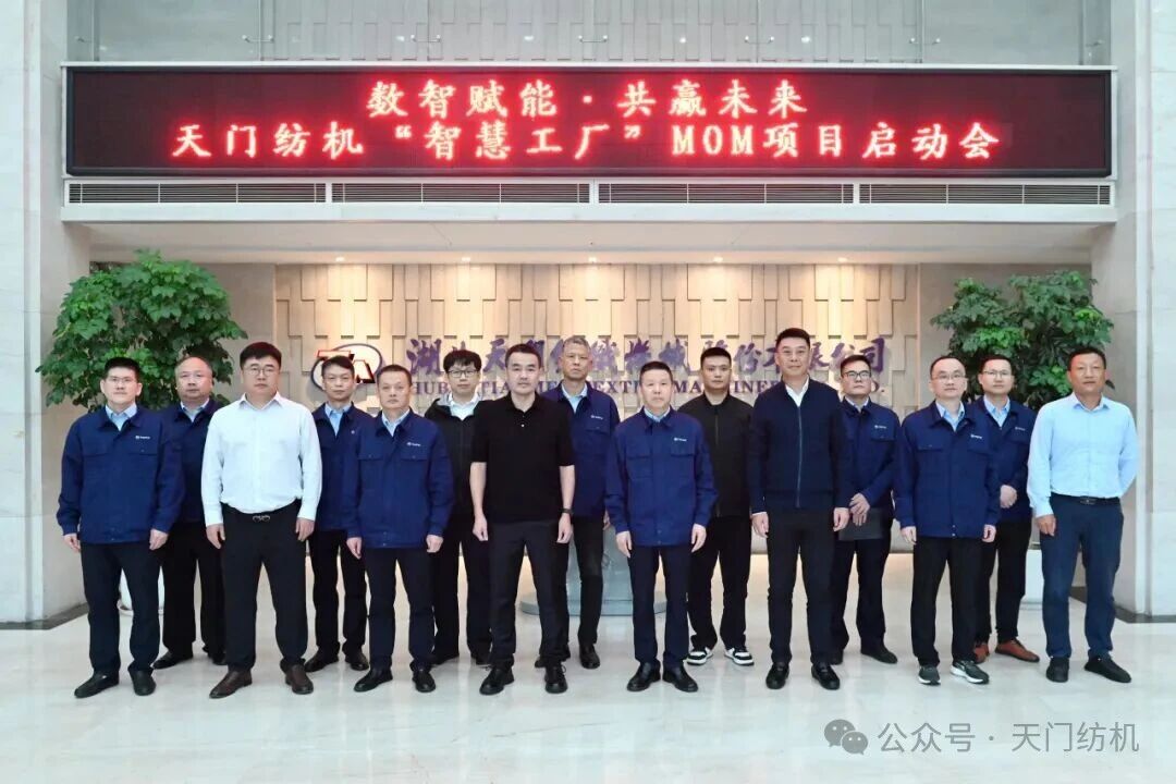 2025年10月15日下午,天門紡機在科技樓五樓會議室召開MOM系統項目啟動會。公司董事長沈方勇、項目合作方廣東盤古信息科技股份有限公司CTO劉鵬、副總經理游畢濤及項目相關負責人出席會議,公司副總經理胡進紅、鄧俊杰,有關部門、車間負責人和工作人員參加了會議。